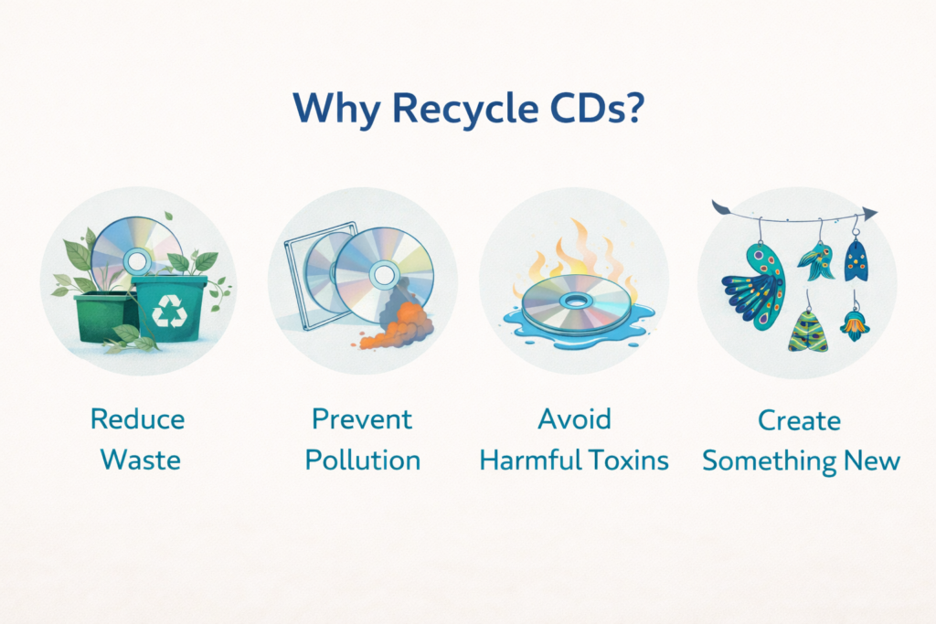 Every year, tons of electronic waste end up in landfills, and CDs are a big part of that. By recycling, we can keep them out of our beautiful earth and help reduce the waste crisis.