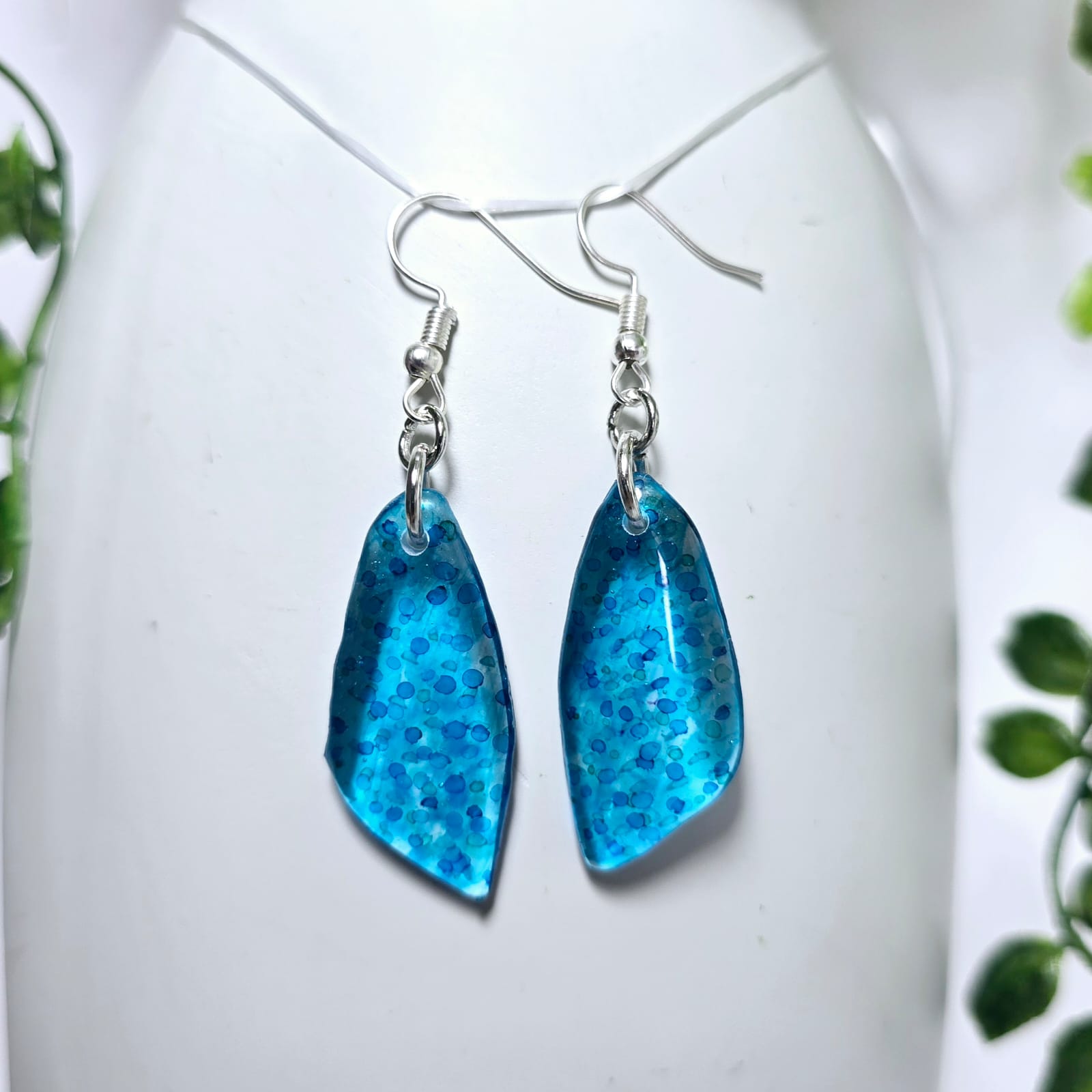 These earrings have been made from an old CD. They have been hand cut and hand painted in layers using a enviromentally safe resin, creating a 3D effect. They are a kind pair. The earring hook is made is nickle free and hypoallerginic.