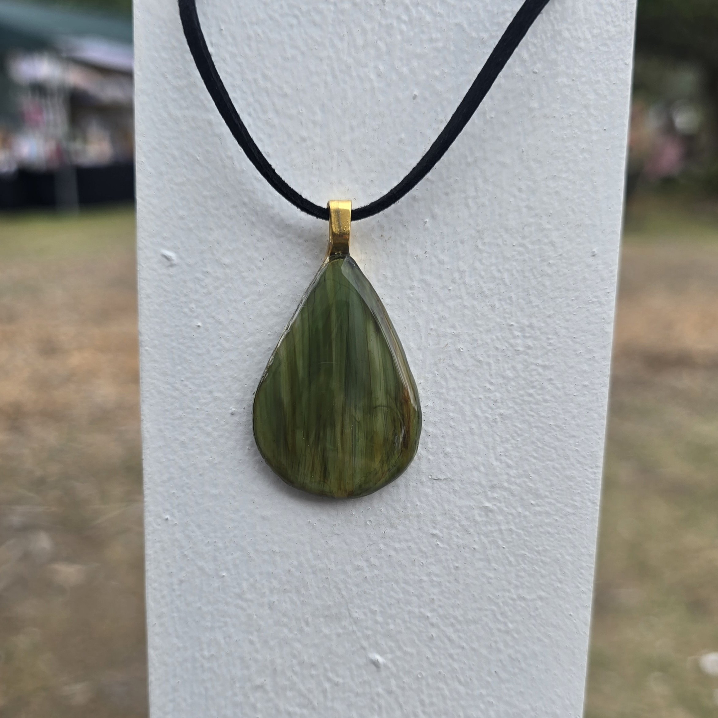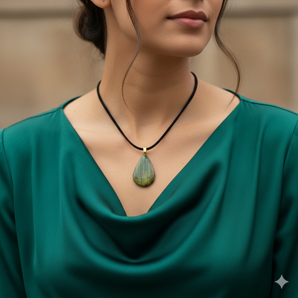 Handcrafted Green Teardrop Pendant – Recycled CD Jewellery