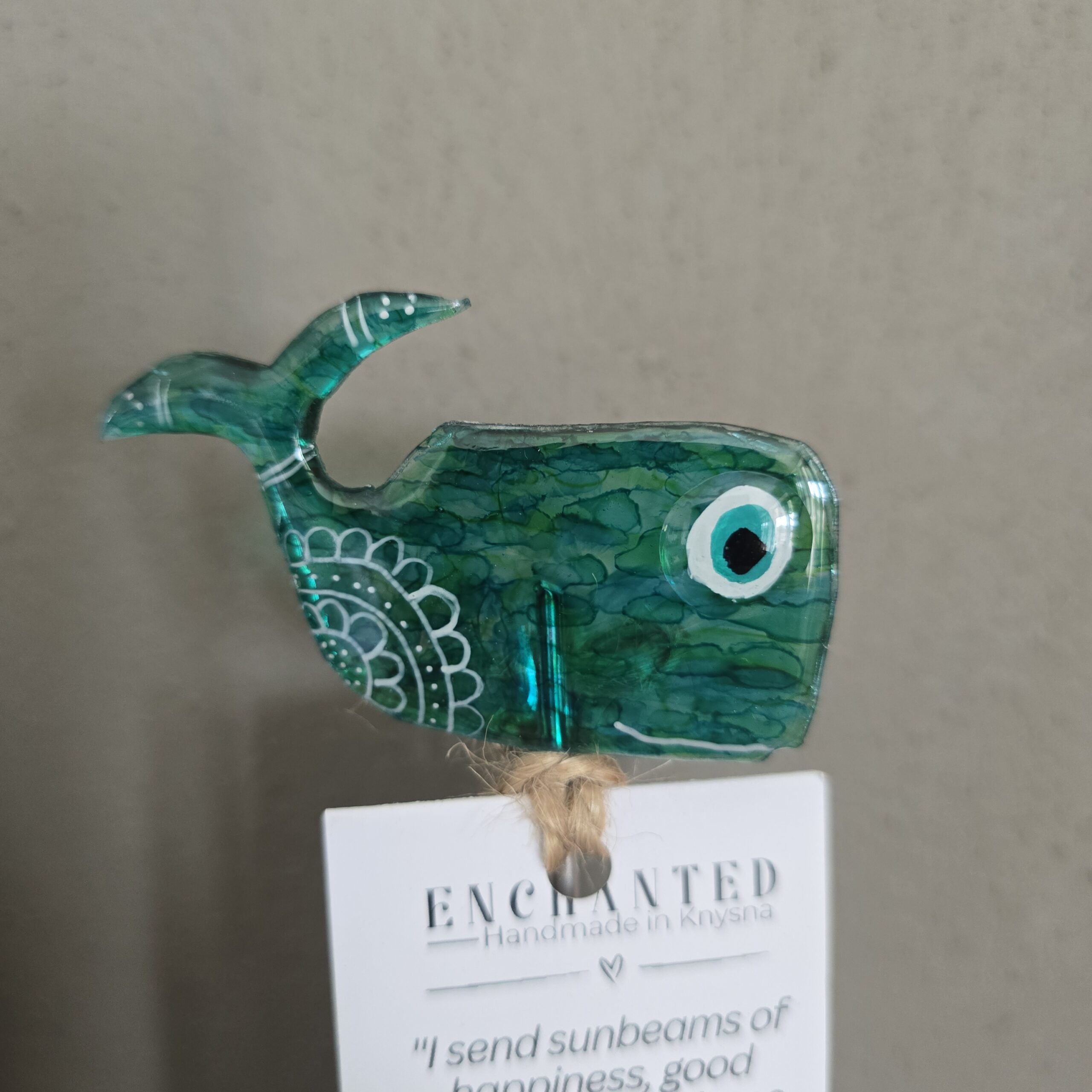 This handmade whale is created from a recycled CD and carefully shaped, painted, and finished by hand.