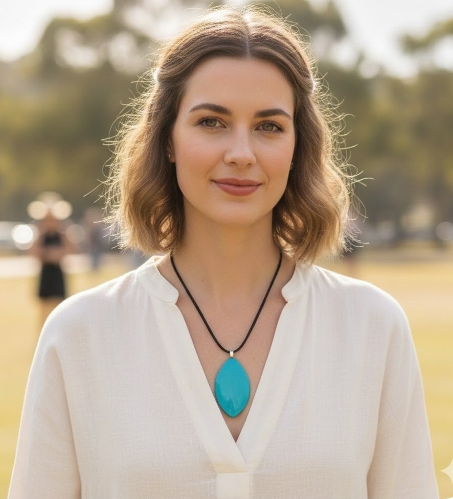 A smooth turquoise pendant with a calm, ocean-inspired feel.